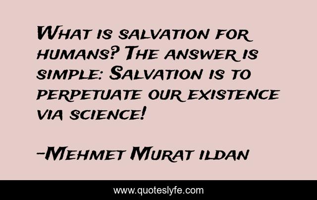 This page presents the quote "What is salvation for humans? The answer is simple: Salvation is to perpetuate our existence via science!". Author of this quote is Mehmet Murat ildan. This quote is about turkish-aphorisms, perpetuate, existence, human-salvation, ildan-wise-sayings, turkish, ildan-wisdom, science, turkish-sayings,.
