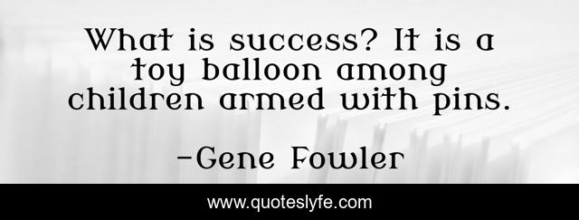 This page presents the quote "What is success? It is a toy balloon among children armed with pins.". Author of this quote is Gene Fowler. This quote is about balloon, toy, children,.