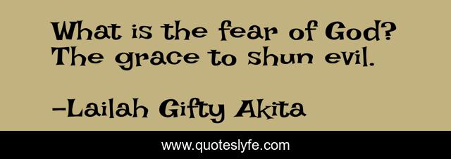 This page presents the quote "What is the fear of God? The grace to shun evil.". Author of this quote is Lailah Gifty Akita. This quote is about christian, warnings, evil, inspirational, enthusiasm, grace, hope,.