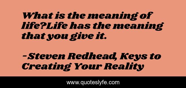 "Steven Redhead, Keys to Creating Your Reality Quotes." Quoteslyfe.com, 2025. Fri. 05 Dec. 2025. <https://www.quoteslyfe.com/quote/What-is-the-meaning-of-life-Life-228577>.