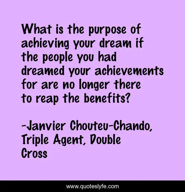 "Janvier Chouteu-Chando, Triple Agent, Double Cross Quotes." Quoteslyfe.com, 2025. Sat. 06 Dec. 2025. <https://www.quoteslyfe.com/quote/What-is-the-purpose-of-achieving-your-13654>.
