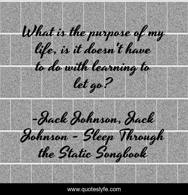 This page presents the quote "What is the purpose of my life, is it doesn't have to do with learning to let go?". Author of this quote is Jack Johnson, Jack Johnson - Sleep Through the Static Songbook. .