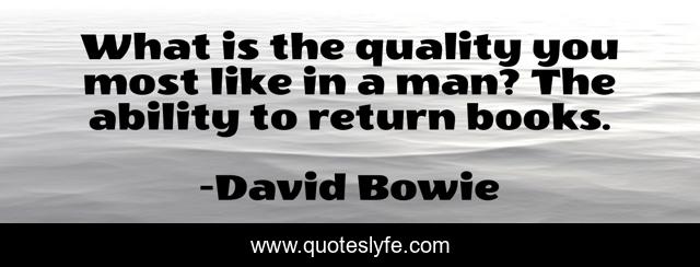 This page presents the quote "What is the quality you most like in a man? The ability to return books.". Author of this quote is David Bowie. .