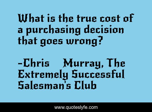 "Chris Murray, The Extremely Successful Salesman's Club Quotes." Quoteslyfe.com, 2025. Fri. 05 Dec. 2025. <https://www.quoteslyfe.com/quote/What-is-the-true-cost-of-a-109688>.