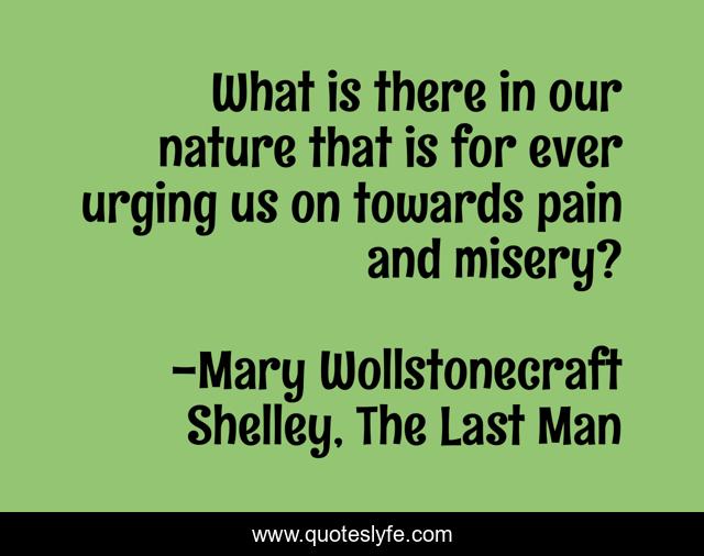 This page presents the quote "What is there in our nature that is for ever urging us on towards pain and misery?". Author of this quote is Mary Wollstonecraft Shelley, The Last Man. This quote is about human-nature, misery,.