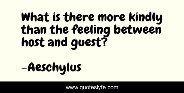 This page presents the quote "What is there more kindly than the feeling between host and guest?". Author of this quote is Aeschylus. This quote is about feeling, guest, between,.