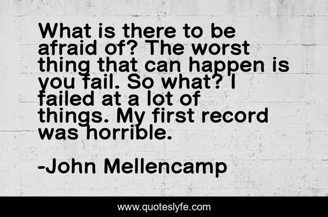 This page presents the quote "What is there to be afraid of? The worst thing that can happen is you fail. So what? I failed at a lot of things. My first record was horrible.". Author of this quote is John Mellencamp. This quote is about ways, fear, overcome,.