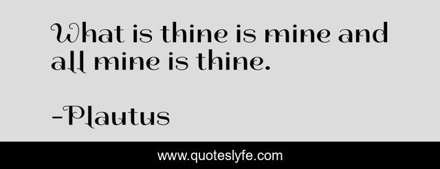This page presents the quote "What is thine is mine and all mine is thine.". Author of this quote is Plautus. .