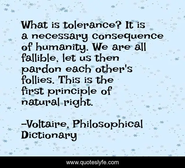 "Voltaire, Philosophical Dictionary Quotes." Quoteslyfe.com, 2025. Fri. 05 Dec. 2025. <https://www.quoteslyfe.com/quote/What-is-tolerance-It-is-a-necessary-255032>.