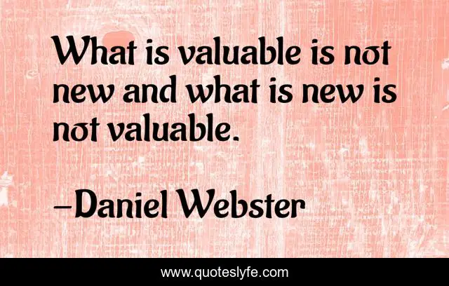 This page presents the quote "What is valuable is not new and what is new is not valuable.". Author of this quote is Daniel Webster. .