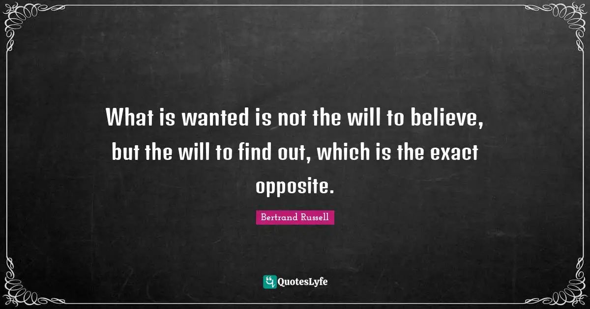 This page presents the quote "What is wanted is not the will to believe, but the will to find out, which is the exact opposite.". Author of this quote is Bertrand Russell. This quote is about discovery, knowledge, belief,.