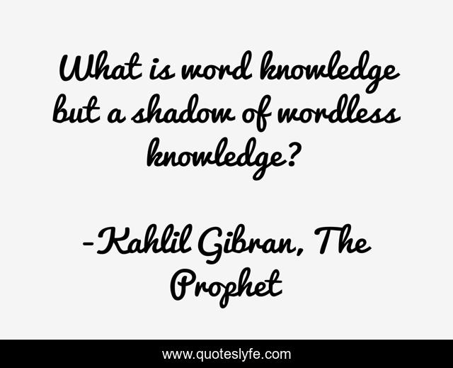 "Kahlil Gibran, The Prophet Quotes." Quoteslyfe.com, 2025. Sat. 13 Dec. 2025. <https://www.quoteslyfe.com/quote/What-is-word-knowledge-but-a-shadow-113386>.