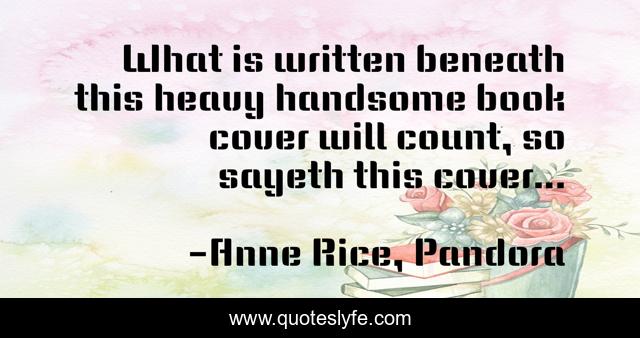 "Anne Rice, Pandora Quotes." Quoteslyfe.com, 2025. Fri. 05 Dec. 2025. <https://www.quoteslyfe.com/quote/What-is-written-beneath-this-heavy-handsome-43283>.