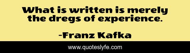 This page presents the quote "What is written is merely the dregs of experience.". Author of this quote is Franz Kafka. .