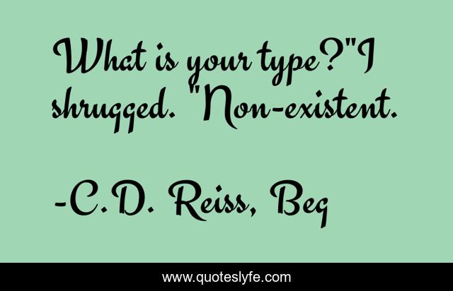 "C.D. Reiss, Beg Quotes." Quoteslyfe.com, 2025. Fri. 05 Dec. 2025. <https://www.quoteslyfe.com/quote/What-is-your-type-I-shrugged-Non-214328>.
