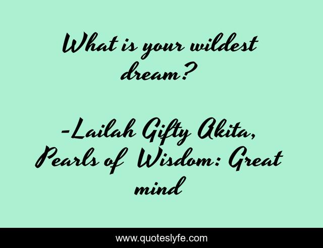 "Lailah Gifty Akita, Pearls of Wisdom: Great mind Quotes." Quoteslyfe.com, 2025. Mon. 08 Dec. 2025. <https://www.quoteslyfe.com/quote/What-is-your-wildest-dream-208367>.