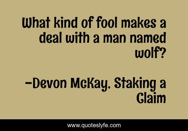 This page presents the quote "What kind of fool makes a deal with a man named wolf?". Author of this quote is Devon McKay, Staking a Claim. .