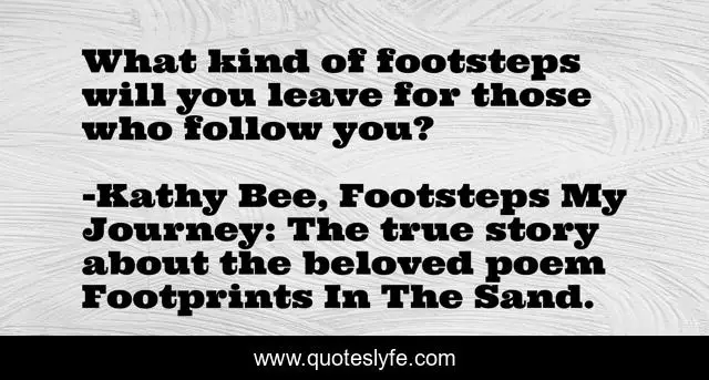 "Kathy Bee, Footsteps My Journey: The true story about the beloved poem Footprints In The Sand. Quotes." Quoteslyfe.com, 2025. Mon. 08 Dec. 2025. <https://www.quoteslyfe.com/quote/What-kind-of-footsteps-will-you-leave-204965>.