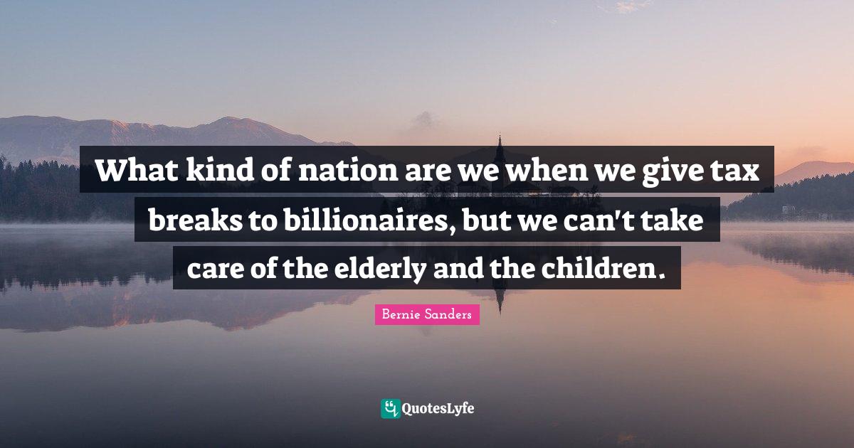 What kind of nation are we when we give tax breaks to billionaires, but we can't take care of the elderly and the children.