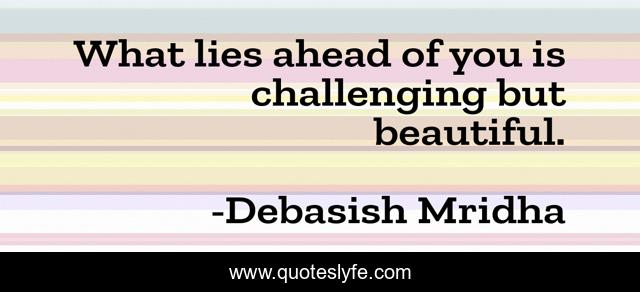 This page presents the quote "What lies ahead of you is challenging but beautiful.". Author of this quote is Debasish Mridha. This quote is about challenging, philosophy, debasish-mridha, graduation, quotes, future, inspirational, what-lies-ahead, enthusiasm,.