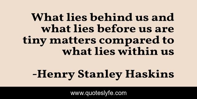 This page presents the quote "What lies behind us and what lies before us are tiny matters compared to what lies within us". Author of this quote is Henry Stanley Haskins. .