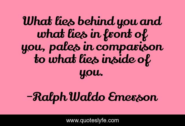 This page presents the quote "What lies behind you and what lies in front of you, pales in comparison to what lies inside of you.". Author of this quote is Ralph Waldo Emerson. This quote is about comparison, behind,.