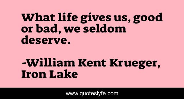 This page presents the quote "What life gives us, good or bad, we seldom deserve.". Author of this quote is William Kent Krueger, Iron Lake. .