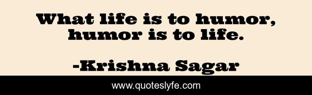 This page presents the quote "What life is to humor, humor is to life.". Author of this quote is Krishna Sagar. This quote is about fun, humor, inspiration,.