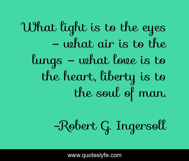 This page presents the quote "What light is to the eyes – what air is to the lungs – what love is to the heart, liberty is to the soul of man.". Author of this quote is Robert G. Ingersoll. .