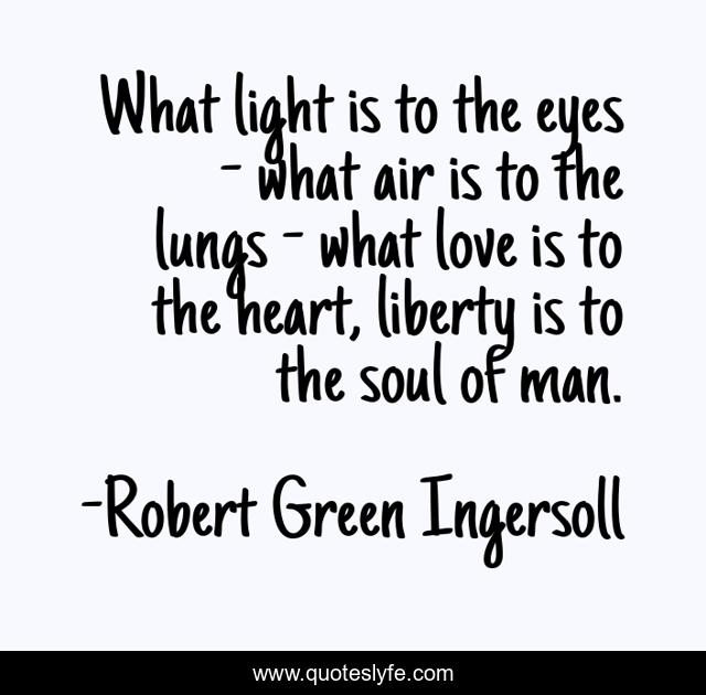 This page presents the quote "What light is to the eyes - what air is to the lungs - what love is to the heart, liberty is to the soul of man.". Author of this quote is Robert Green Ingersoll. This quote is about light, eyes, love, affection,.