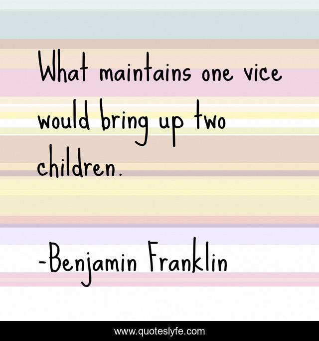 This page presents the quote "What maintains one vice would bring up two children.". Author of this quote is Benjamin Franklin. .