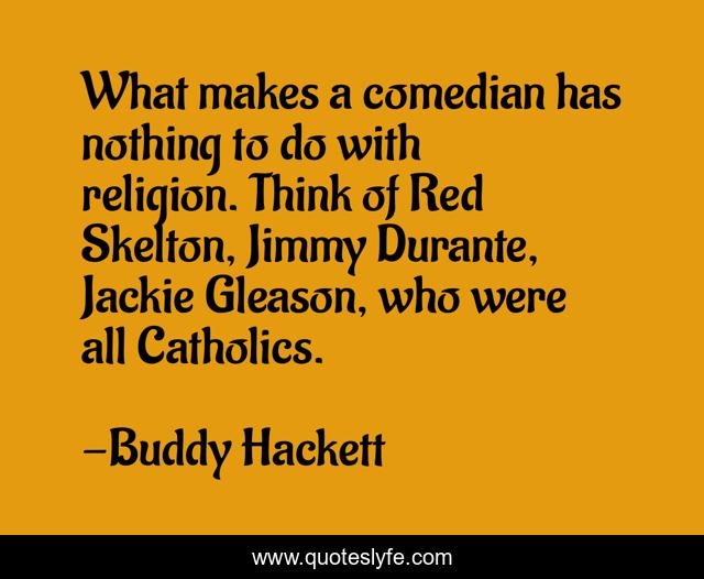 This page presents the quote "What makes a comedian has nothing to do with religion. Think of Red Skelton, Jimmy Durante, Jackie Gleason, who were all Catholics.". Author of this quote is Buddy Hackett. This quote is about nothing, think, red,.