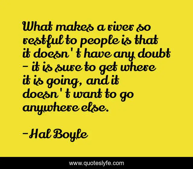 This page presents the quote "What makes a river so restful to people is that it doesn't have any doubt - it is sure to get where it is going, and it doesn't want to go anywhere else.". Author of this quote is Hal Boyle. This quote is about river, people,.