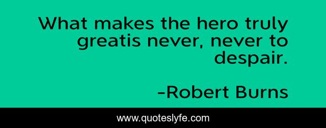 This page presents the quote "What makes the hero truly greatis never, never to despair.". Author of this quote is Robert Burns. This quote is about brave, hero, despair,.