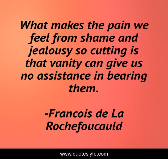 This page presents the quote "What makes the pain we feel from shame and jealousy so cutting is that vanity can give us no assistance in bearing them.". Author of this quote is Francois de La Rochefoucauld. This quote is about shame, pain, vanity,.