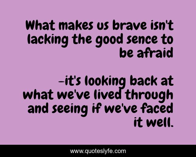 "it's looking back at what we've lived through and seeing if we've faced it well. Quotes." Quoteslyfe.com, 2025. Fri. 05 Dec. 2025. <https://www.quoteslyfe.com/quote/What-makes-us-brave-isn-t-lacking-202936>.