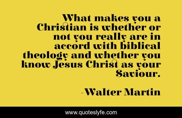 This page presents the quote "What makes you a Christian is whether or not you really are in accord with biblical theology and whether you know Jesus Christ as your Saviour.". Author of this quote is Walter Martin. .
