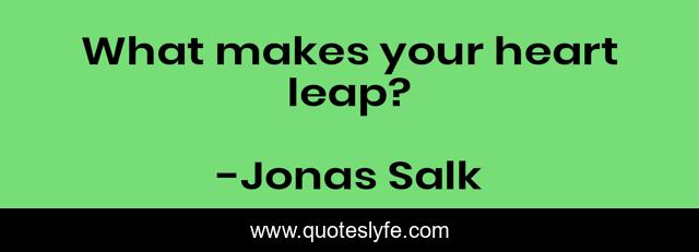 This page presents the quote "What makes your heart leap?". Author of this quote is Jonas Salk. This quote is about calling, life-purpose,.