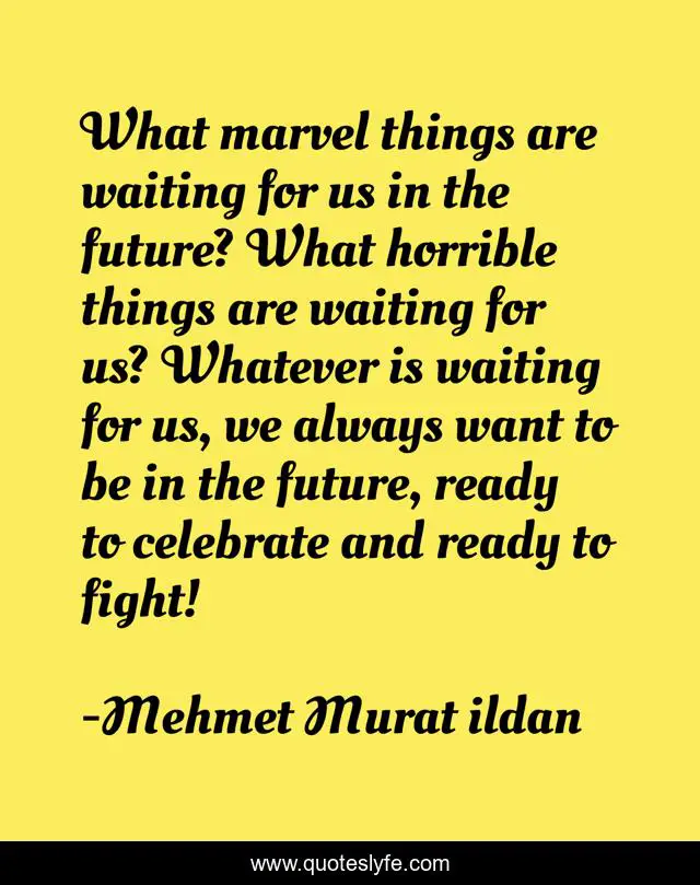 This page presents the quote "What marvel things are waiting for us in the future? What horrible things are waiting for us? Whatever is waiting for us, we always want to be in the future, ready to celebrate and ready to fight!". Author of this quote is Mehmet Murat ildan. .