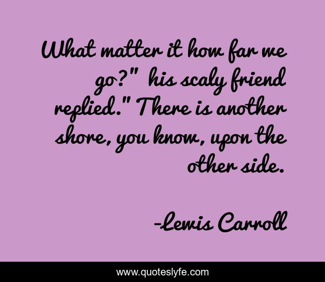 This page presents the quote "What matter it how far we go?" his scaly friend replied."There is another shore, you know, upon the other side.". Author of this quote is Lewis Carroll. .