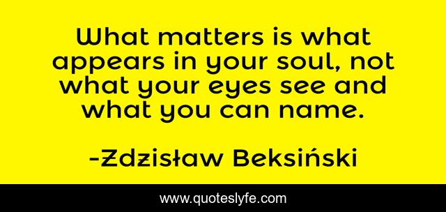 This page presents the quote "What matters is what appears in your soul, not what your eyes see and what you can name.". Author of this quote is Zdzisław Beksiński. This quote is about appear, matter, see, soul, matters, meaning, name,.
