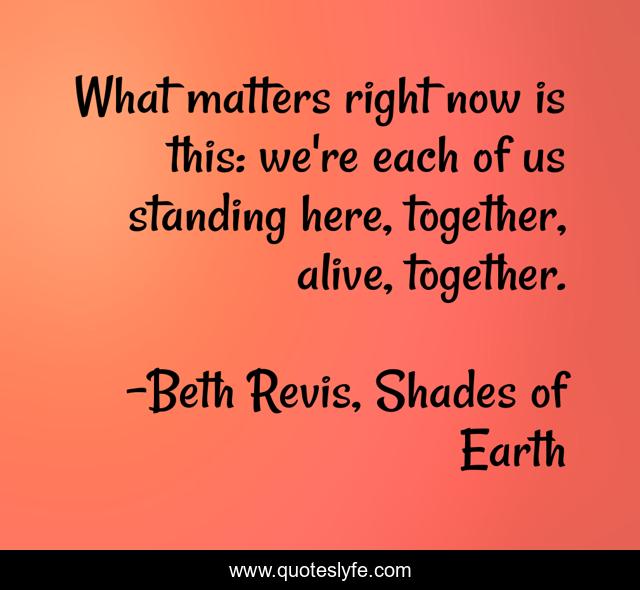 This page presents the quote "What matters right now is this: we're each of us standing here, together, alive, together.". Author of this quote is Beth Revis, Shades of Earth. This quote is about enthusiasm, family-relationships, inspirational,.