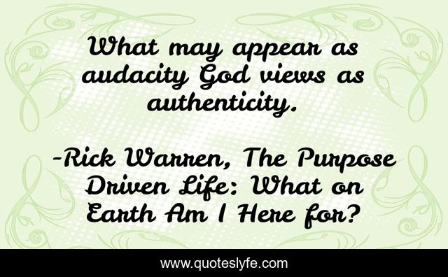 This page presents the quote "What may appear as audacity God views as authenticity.". Author of this quote is Rick Warren, The Purpose Driven Life: What on Earth Am I Here for?. .