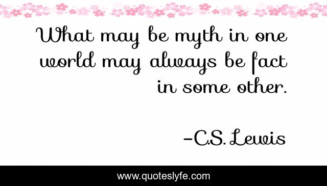 This page presents the quote "What may be myth in one world may always be fact in some other.". Author of this quote is C.S. Lewis. This quote is about literature, storytelling,.