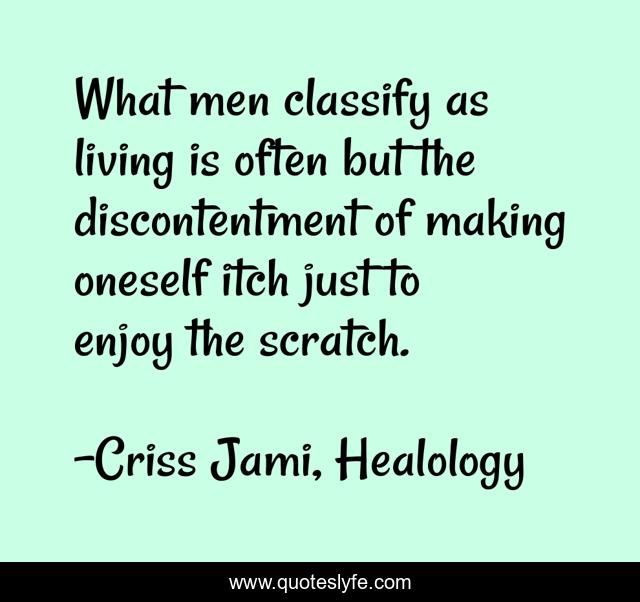 "Criss Jami, Healology Quotes." Quoteslyfe.com, 2025. Sun. 07 Dec. 2025. <https://www.quoteslyfe.com/quote/What-men-classify-as-living-is-often-105599>.