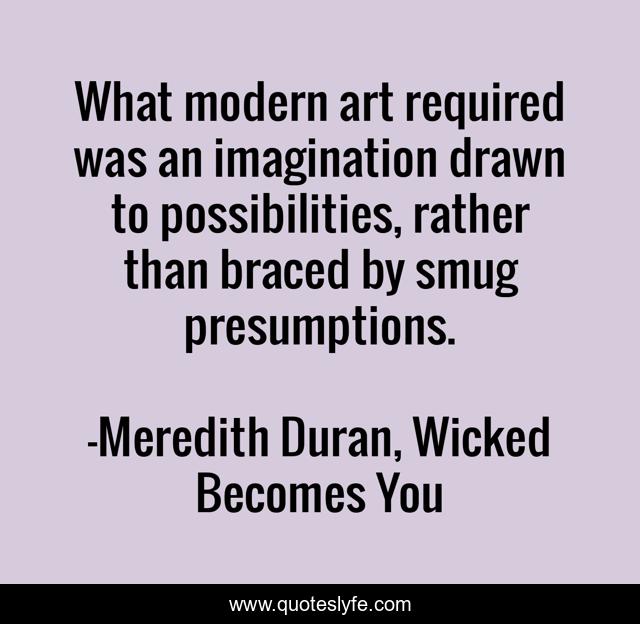This page presents the quote "What modern art required was an imagination drawn to possibilities, rather than braced by smug presumptions.". Author of this quote is Meredith Duran, Wicked Becomes You. .