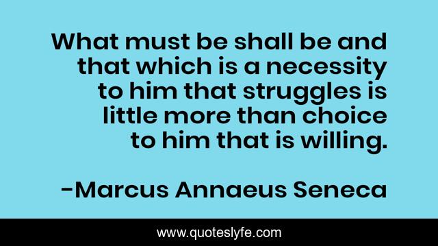 This page presents the quote "What must be shall be and that which is a necessity to him that struggles is little more than choice to him that is willing.". Author of this quote is Marcus Annaeus Seneca. .