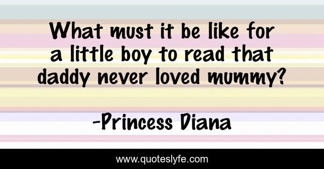 This page presents the quote "What must it be like for a little boy to read that daddy never loved mummy?". Author of this quote is Princess Diana. This quote is about loved, little, boy,.