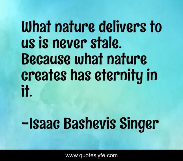 This page presents the quote "What nature delivers to us is never stale. Because what nature creates has eternity in it.". Author of this quote is Isaac Bashevis Singer. This quote is about eternity, us,.