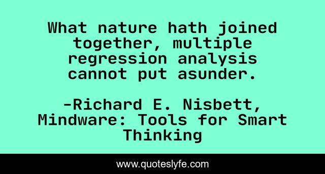 "Richard E. Nisbett, Mindware: Tools for Smart Thinking Quotes." Quoteslyfe.com, 2025. Fri. 05 Dec. 2025. <https://www.quoteslyfe.com/quote/What-nature-hath-joined-together-multiple-regression-56144>.